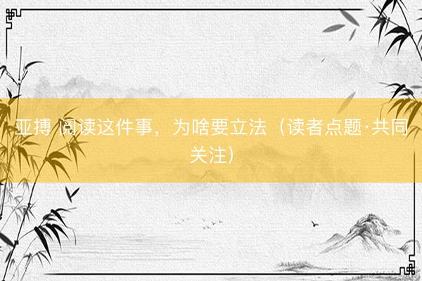 亚搏 阅读这件事,为啥要立法(读者点题·共同关注)