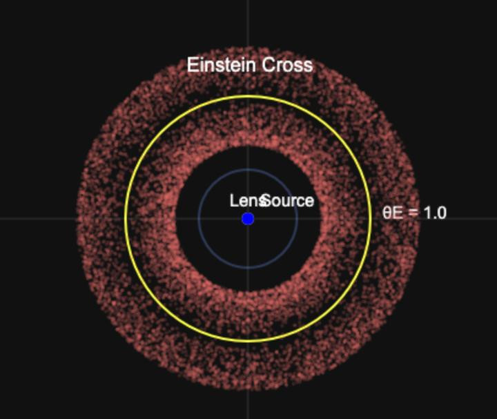 频频情况下,当远景星系和配景星系莫得完全对都时,配景星系的光会被诬蔑成几个破灭的圆弧,或者形成好几个一模相似的分身,但是要念念形成一个莫得任何缺口的好意思满闭合光环,必须欢腾一个极其严苛的要求: 地球上的千里镜、中间的大质料星系、以及最背后的远处星系,这三者必须极其精确地连成一条都备的直线!