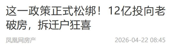 但不是所有老屋子王人能沾光,有东谈主手里的酿成了金疙瘩,有东谈主死扛到终末只会血本无归。 2026年,你手里的屋子是金疙瘩如故烫手山芋,当今就必须看明晰!