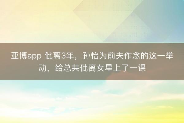 亚博app 仳离3年,孙怡为前夫作念的这一举动,给总共仳离女星上了一课
