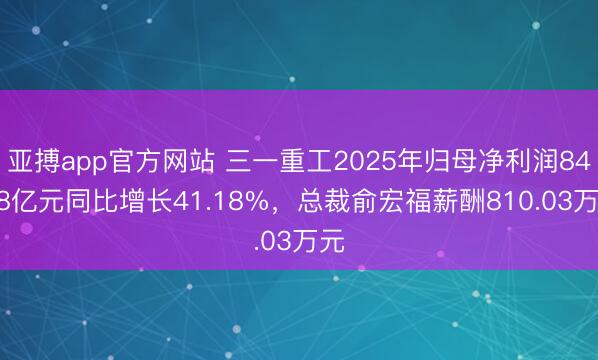 亚搏app官方网站 三一重工2025年归母净利润84.08亿元同比增长41.18%,总裁俞宏福薪酬810.03万元