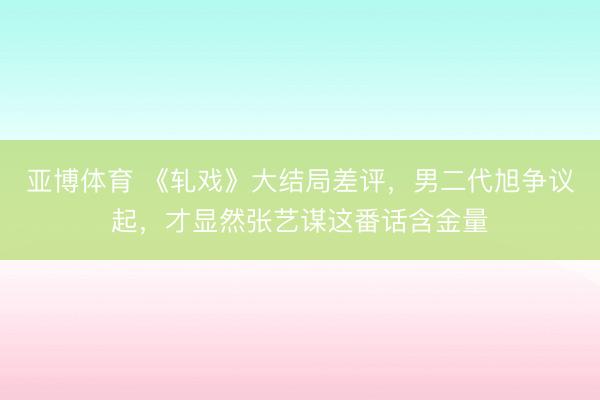 亚博体育 《轧戏》大结局差评,男二代旭争议起,才显然张艺谋这番话含金量