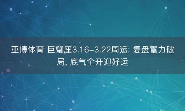 亚博体育 巨蟹座3.16-3.22周运: 复盘蓄力破局, 底气全开迎好运