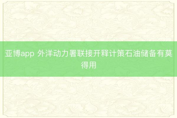亚博app 外洋动力署联接开释计策石油储备有莫得用