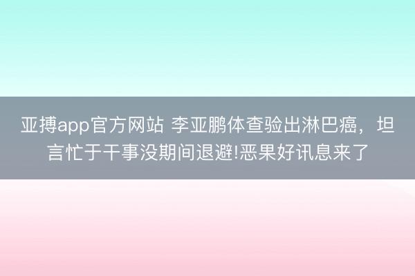 亚搏app官方网站 李亚鹏体查验出淋巴癌,坦言忙于干事没期间退避!恶果好讯息来了