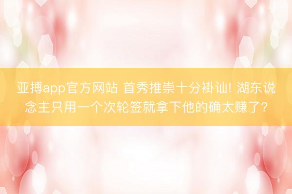 亚搏app官方网站 首秀推崇十分褂讪! 湖东说念主只用一个次轮签就拿下他的确太赚了?