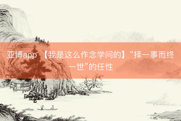 亚博app 【我是这么作念学问的】“择一事而终一世”的任性