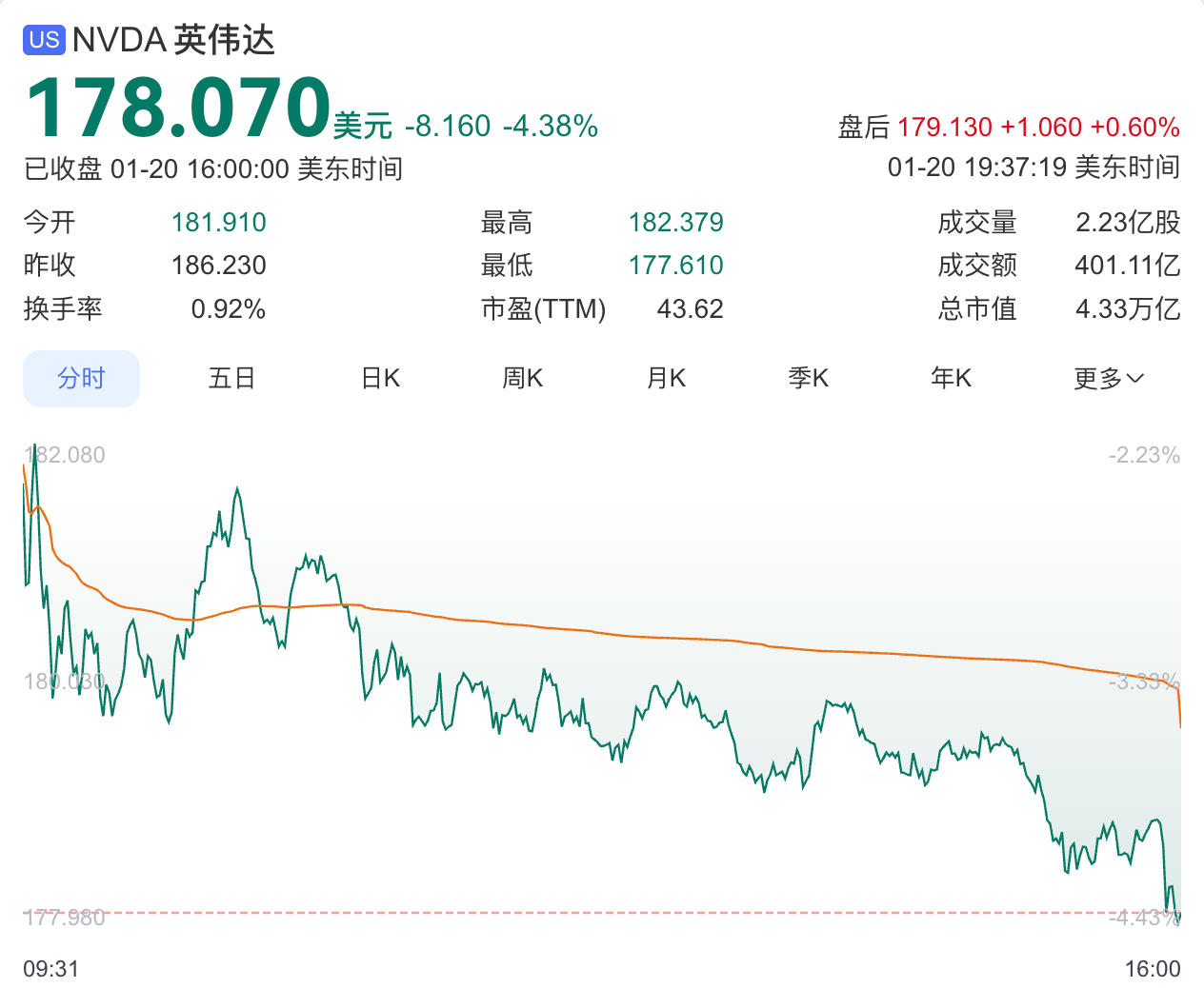 好意思东本事1月20日,东说念主工智能芯片巨头英伟达(NASDAQ: NVDA)股价碰到大幅回调,昨晚公司股价跳空低开2.41%,盘中沿路低走,截止收盘,英伟达股价报178.07好意思元,较前一往翌日着落8.16好意思元,跌幅达4.38%,单日成交额401亿好意思元,成交量2.23亿股。按收盘价蓄意,公司总市值缩水至4.33万亿好意思元,较前一日挥发约1900亿好意思元,折合东说念主民币近1.3万亿元,创下近两个月来最大单日跌幅。 从当日好意思股市集阐扬来看,好意思股三大指数全线着落。闭幕收盘,说念琼斯工业平均指数比前一往翌日着落870.74点,收于48488.59点,跌幅为1.76%;圭臬普尔500种股票指数着落143.15点,米兰体育官网收于6796.86点,跌幅为2.06%;纳斯达克轮廓指数着落561.07点,收于22954.32点,跌幅为2.39%。 英伟达股价走势与好意思股科技板块举座承压。包括英伟达在内的 “七大科技巨头” 集体着落,苹果、亚马逊均跌超3%、特斯拉跌超4%,微软、谷歌同步着落,科技板块的普跌进一步放大了英伟达的股价波动。 英伟达股价自2025年10月波及52周高点207好意思元后抓续轰动回落,闭幕1月20日,股价较前期高点已着落近14%,亚搏年头以来累计跌幅5.4%,市集对AI硬件周期峰值的担忧与估值开荒压力迟缓融会。机构对AI算力投资周期见顶的疑虑也在升温,机构测算,大众云厂商的AI本钱开支增速可能从2025年的80%放缓至2026年的50%。 摩根士丹利研报指出,AI基础门径需求鼓舞英伟达GPU订价权强化,但内存价钱飞腾可能导致毛利率压缩10-40个基点,每股收益潜在跌幅高达16%,行业增长的旯旮压力开动融会。同期,AMD等竞争敌手加快推出替代居品,市集竞争格局迟缓优化,也对英伟达的市集份额与订价智商组成潜在挑战。 尽管股价短期调养,英伟达的事迹基本面照旧刚劲。2025财年第三季度,英伟达收入达到了创记载的570亿好意思元,环比增长22%,同比增长62%;净利润为319.10亿好意思元,较上年同期的193.09亿好意思元增长65%,较上一季度的264.22亿好意思元比拟增长21%。尤其是数据中心蓄意收入创记载达到430亿好意思元,同比增长56%,环比增长27%。 {jz:field.toptypename/}同期,英伟达将于2月25日透露2025年第四季度财报,这次财报的中枢看点是其在Blackwell芯片量产经由及AI软件业务增长情况。摩根士丹利研报算计,2026年英伟达GB200/300系列机架出货量将同比增长超140%,但短期来看,投资者对芯片转型期的产能爬坡、成本限度及订单收场情况存在不合。高盛则以为,英伟达在2026年的繁多飞腾后劲,咱们之是以看守买入评级,其驱能源来自超大领域云工作商开销的加多和非传统客户的需求。 |