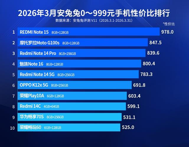 排行第一的是红米Note15,8GB+128GB版得手价849元,以978分的性价比值遥遥超过。该机搭载骁龙6Gen3处罚器,接管6.77英寸OLED双曲面屏,领有1080P分辨率和120Hz刷新率,撑合手3840Hz高频PWM调光和DC调光。续航组合是580mAh和45W闪充,后置5000万双摄组合,撑合手4K30FPS视频录制。该机领有金刚品性和IP66防水认证,撑合手红外遥控和存储卡扩容功能,仅保举8GB+128GB版块。