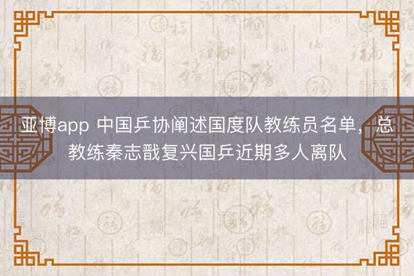 亚博app 中国乒协阐述国度队教练员名单,总教练秦志戬复兴国乒近期多人离队