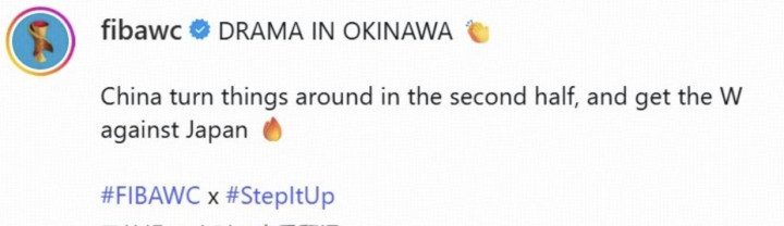 赛后,FIBA第一技巧发文报说念本场比赛,然而他们的用词很有争议:“China with a sneaky win over Japan”,翻译过来即是中国队从日本队身上偷走了一场顺利。随后,多位球迷在FIBA官媒的留言区抗议。