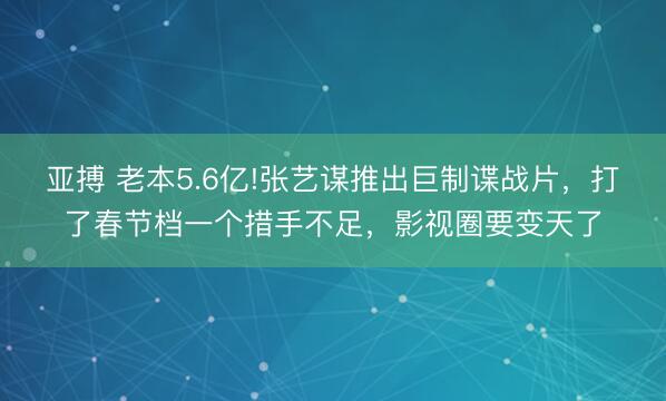 亚搏 老本5.6亿!张艺谋推出巨制谍战片,打了春节档一个措手不足,影视圈要变天了