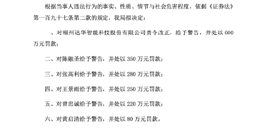 2月27日,福州达华智能科技股份有限公司(简称:ST达华/达华智能)(002512.SZ)清晰,公司收到福建证监局出具的《行政处罚预先请问书》。