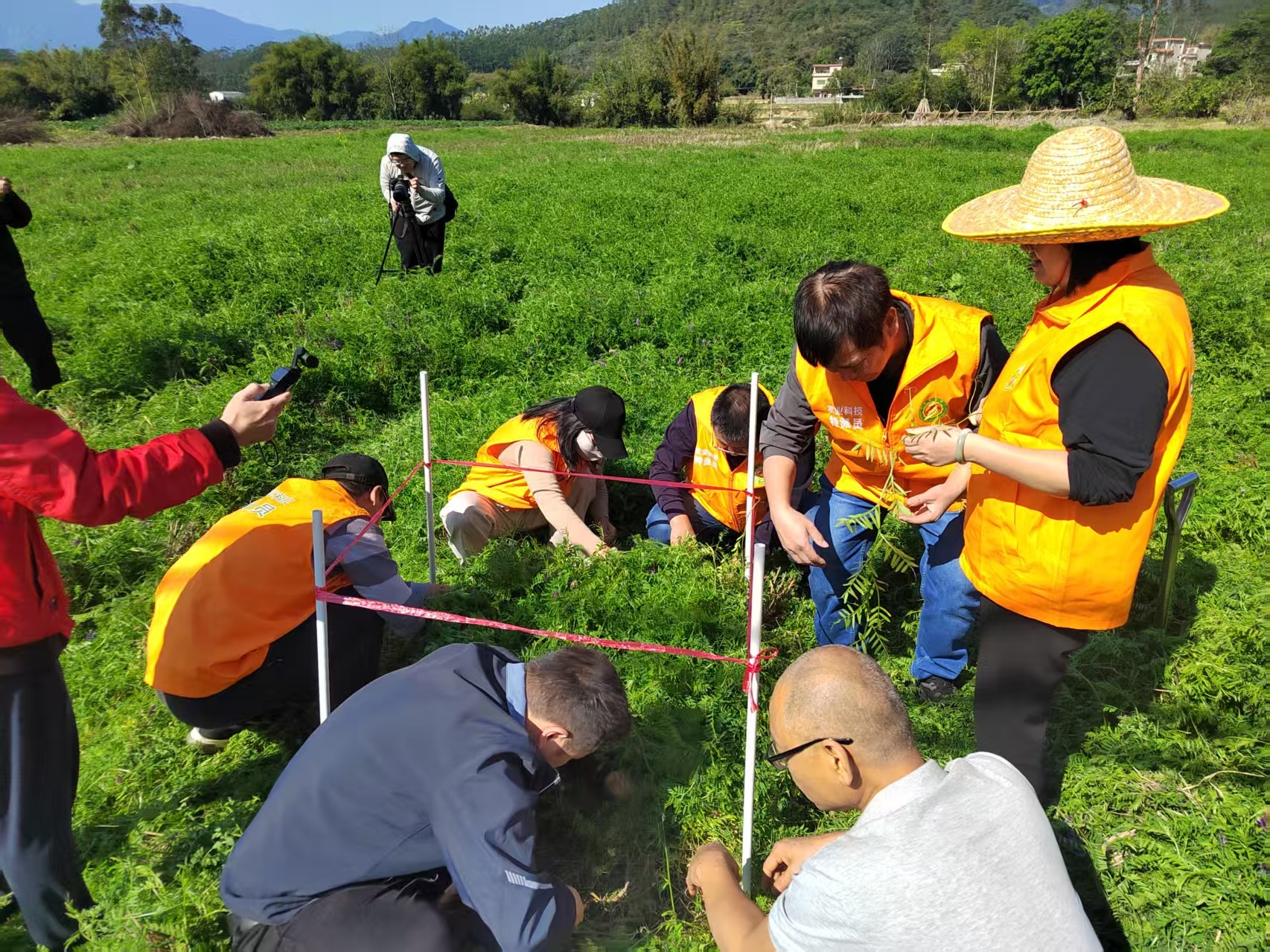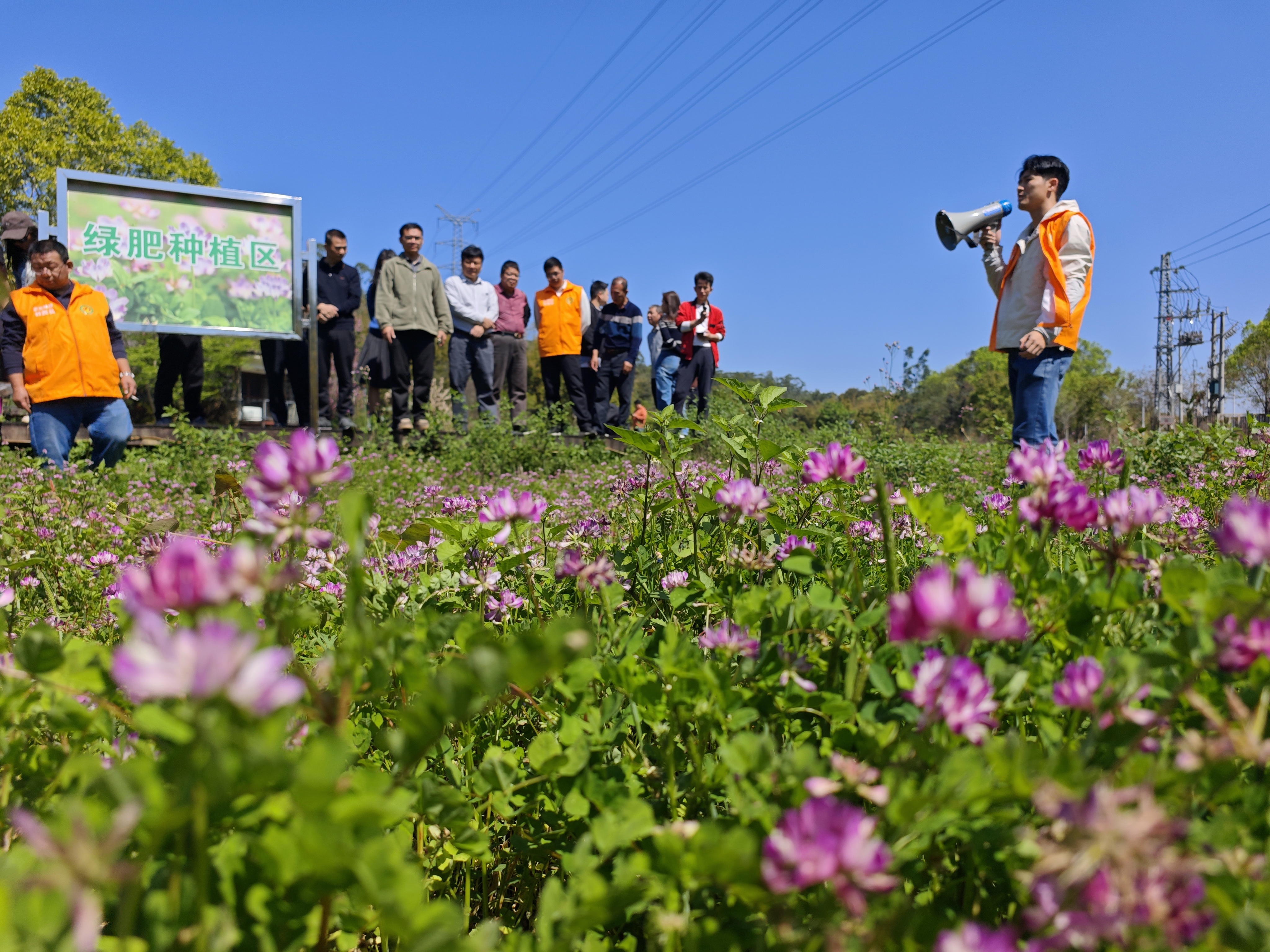 千里浸式不雅摩见实效 测产数据亮底气 本次不雅摩会由博罗县农业农村抽象行状中心独揽,现场树立苕子、紫云英两大中枢示范区,紫花苕子缀满田埂,粉花紫云英铺展成毯,直不雅呈现绿肥培植的内容见效与践诺价值。活动现场,该中心高等农艺师林力夫围绕绿肥品种特质、科学培植措置、实测产量数据、还田利用时间等中枢内容,为参会东说念主员作详备教师,通过现场测产、实地挖根、互动答疑等千里浸式体验,让环球清醒感受绿肥在耕地校正、节本增效上的实实在在价值。