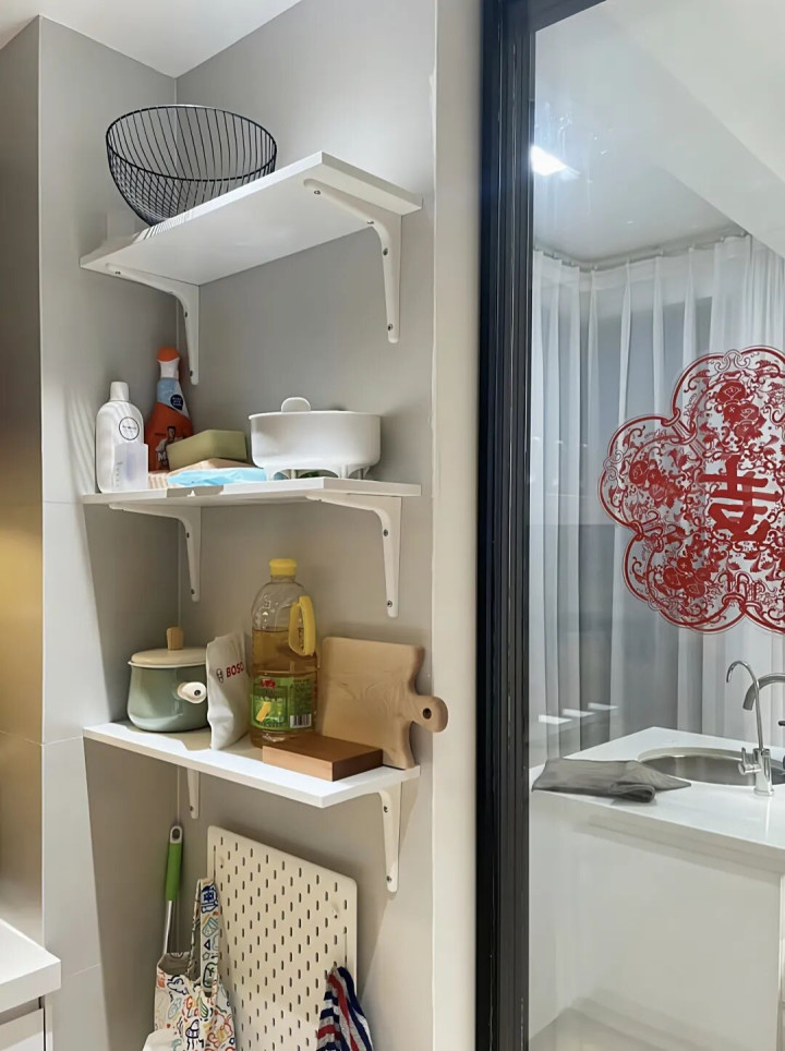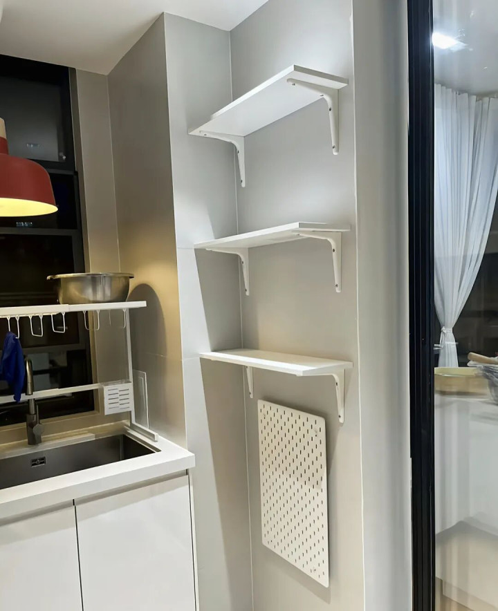 宜家隔板,是家居收纳的好帮忙,唯一墙面能承重,就能在家里的多样所在无邪愚弄。 有网友共享:厨房有个窄得不可的位置,如果作念个柜子进去确定得挤得慌。于是,她决定装上宜家的隔板,既实用又省空间。 这个隔板不仅能放些生计用品,再加上一个洞洞板,还能用来收纳其他厨房物件。