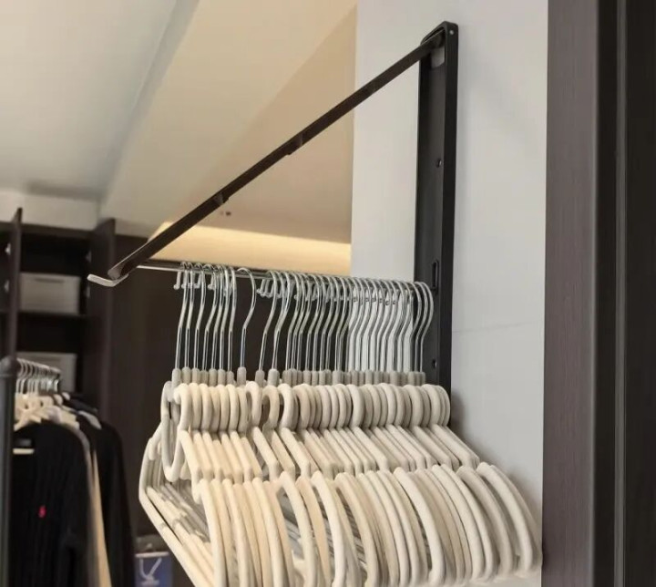 需要用的时候,把它支起来,可以缩短甩掉衣架,用来曝晒内衣裤也可以;无谓的时候,可以把它收起来,与墙面王人平,少许都不占空间。 这么一来,衣架终于有了我方的位置,不仅整洁好意思不雅,还擢升了阳台的使用遵循。