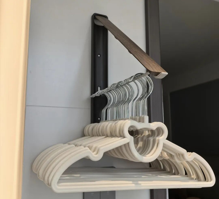 在家里,除了衣物需要好好收纳,衣架也得有个合适的位置。如果莫得故意的所在,它们就会温顺摆放在旯旮,不但影响好意思不雅,还可能变形。 为了惩处这个问题,咱们可以在阳台的光滑墙面上安设一个收纳架。这个架子不需要钉子,唯一用免钉胶粘上就行,操作疏漏又简短。