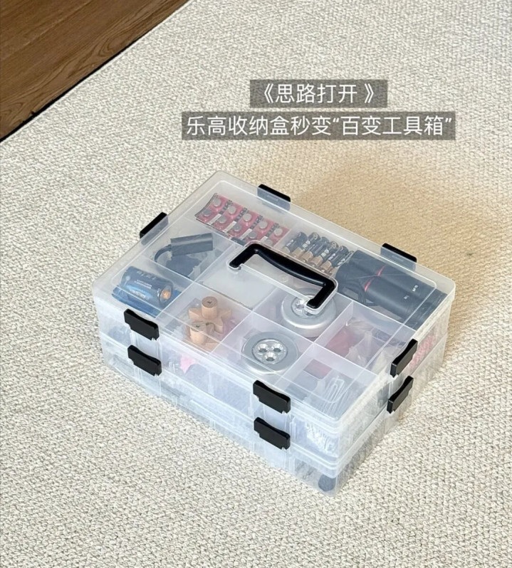 在家里,老是要面临那些钉子、螺丝、胶带等修理吝啬用,之前十足温顺放在一个抽屉里,找的时候费时、冗忙又难找。 有网友冲突了传统的收纳口头,灵光一闪,尽然把孩子的乐高收纳盒拿来当器用箱!这波操作,险些是跨界收纳的最好示范! 这个乐高收纳盒接收的是分层分格盘算推算,何况还透明可视,把电阻、螺丝,多样电子小元件安置在这里,一目了然,还能缩短找到需要找到的物品。