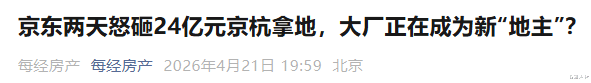 谢忱梁行更是平直刺破:外资即是典型的“择底资金”,它们进场,即是对中国中枢钞票永恒价值的认同。 第三股拒接淡薄的力量,来自豪恣拿地的产业巨头。 就在最近,京东的当作尤为详实。 4月20日,京东在杭州钱江世纪城拿地,耗资6.63亿元;只是隔了一天,又在北京亦庄以17.57亿元拿下商办地块。两个使命日,砸下超24亿元,近五年在北京的拿地金额也曾接近60亿元。