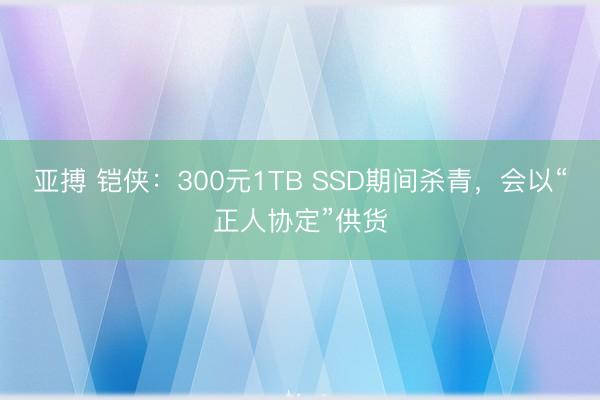 亚搏 铠侠:300元1TB SSD期间杀青,会以“正人协定”供货