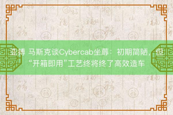 亚搏 马斯克谈Cybercab坐蓐:初期简陋,但“开箱即用”工艺终将终了高效造车