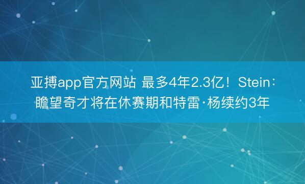 亚搏app官方网站 最多4年2.3亿!Stein:瞻望奇才将在休赛期和特雷·杨续约3年